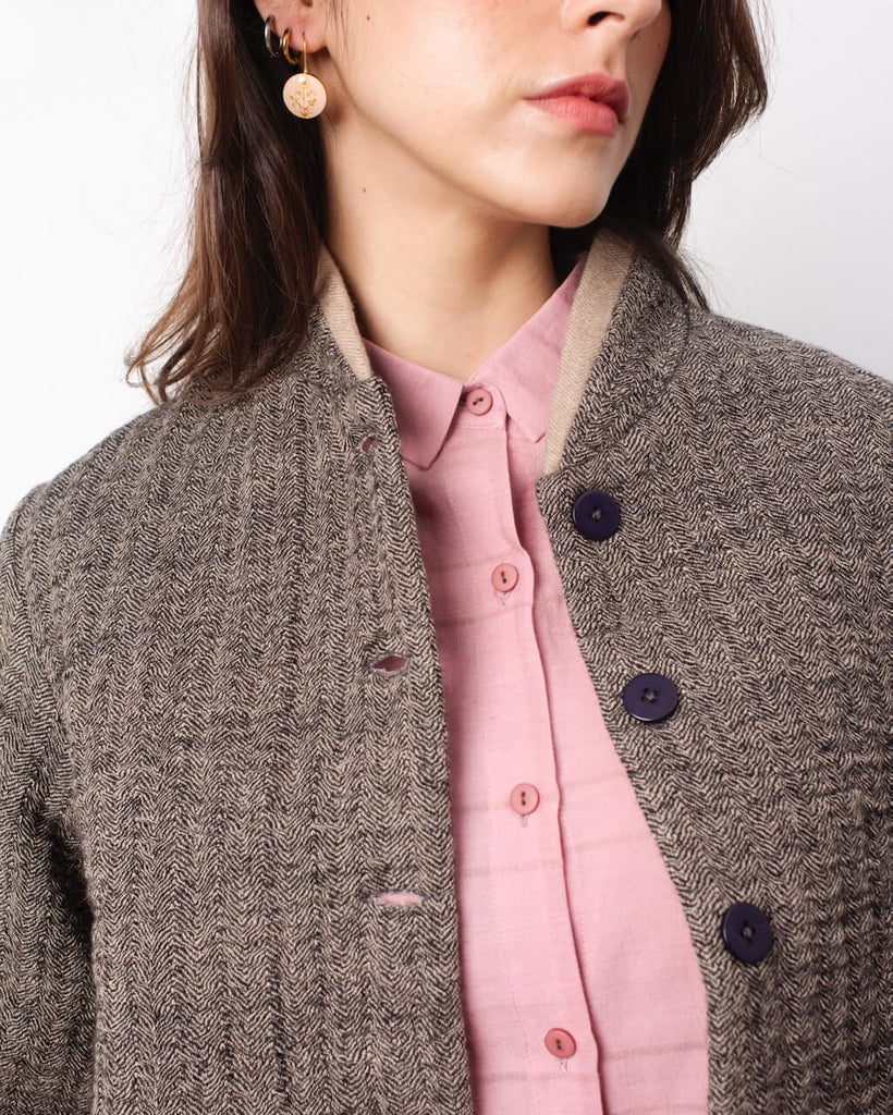 Handwoven cotton button-down shirt with a classic collar and long sleeves.